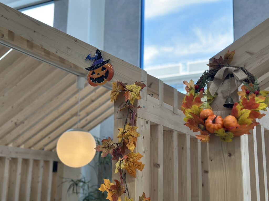 木の温もりが心地いいショールームに、かぼちゃやリースのデコレーションが彩りを加えてくれていて、とっても可愛いんです🥰