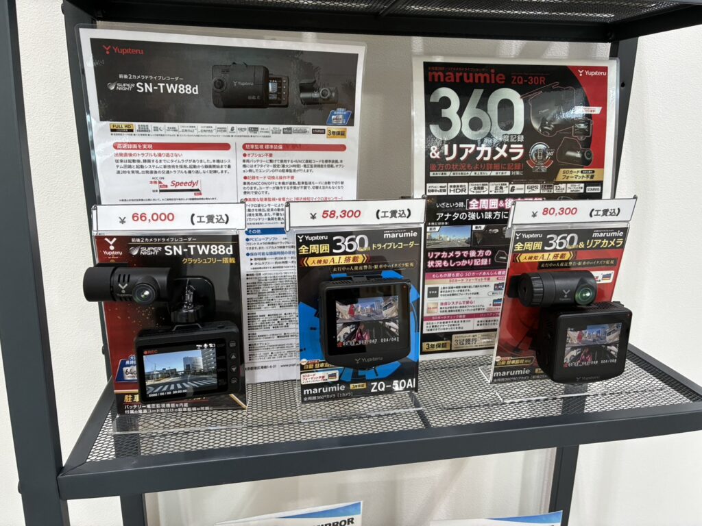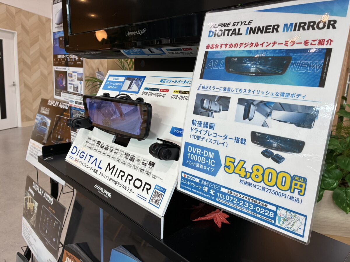 スズキアリーナ堺北では、ドライブをもっと安心・快適に楽しんでいただけるよう、各種ドライブレコーダーを展示しています🎥