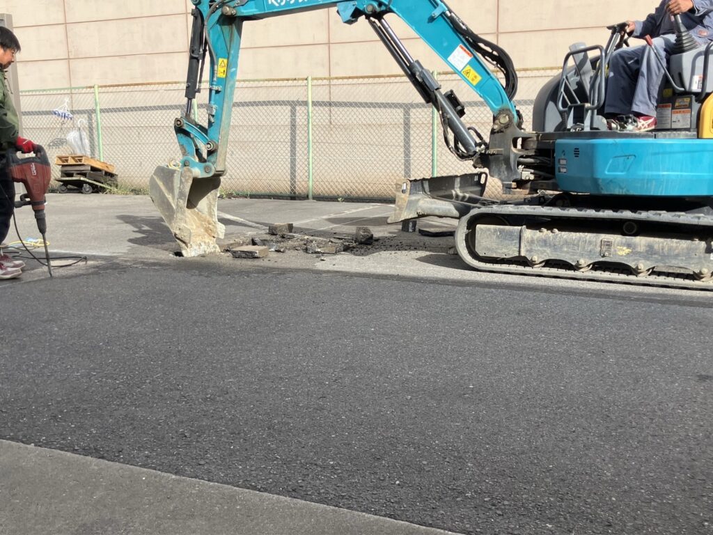 地面を少しずつ掘り返して、洗車機の基礎を作る作業が進んでいました🚜💨