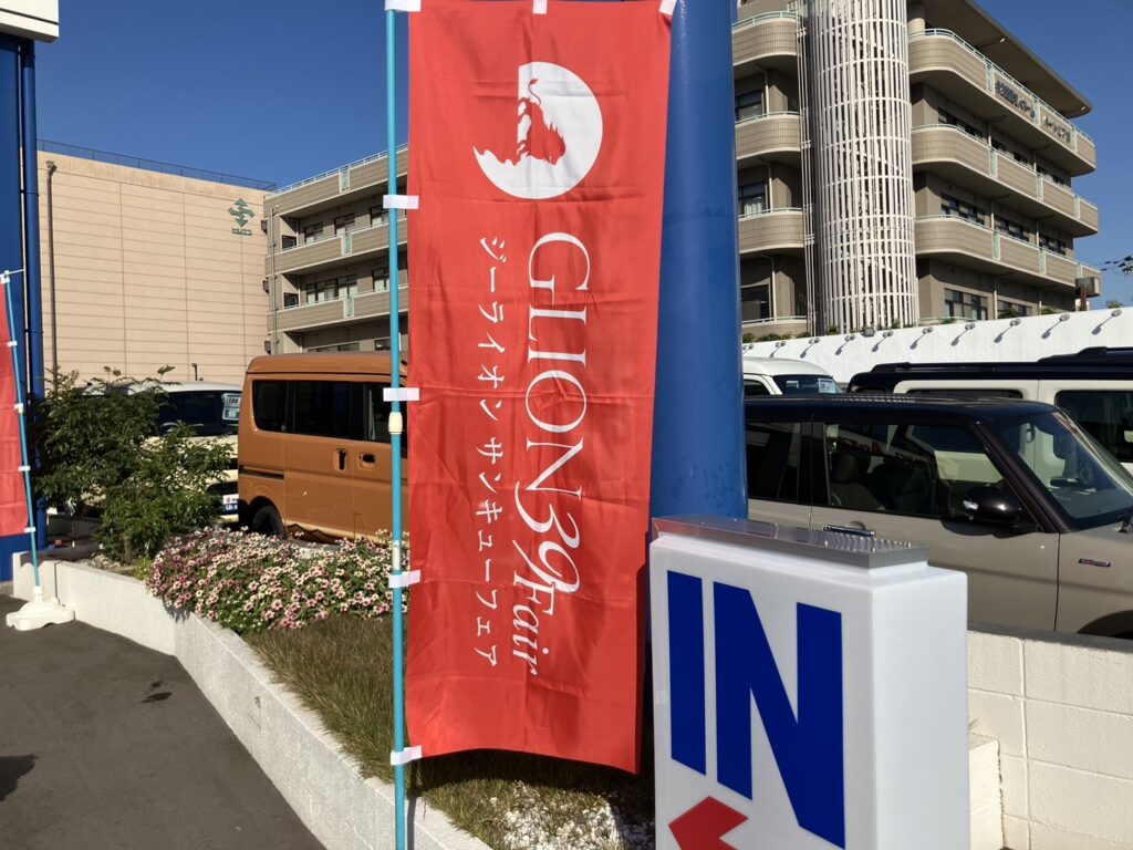 そして外には、フェアの象徴でもある 赤いGLION39フェアのぼり が風になびいており、ご来店される瞬間からイベントの雰囲気を味わっていただけます✨
