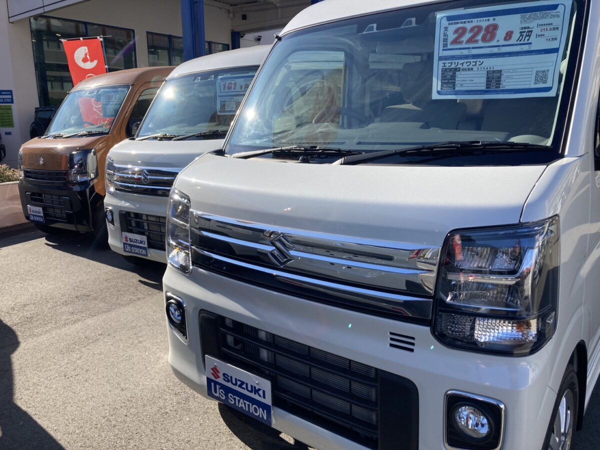 本日は店頭にずらりと並んだエブリイワゴンをご紹介いたします✨
