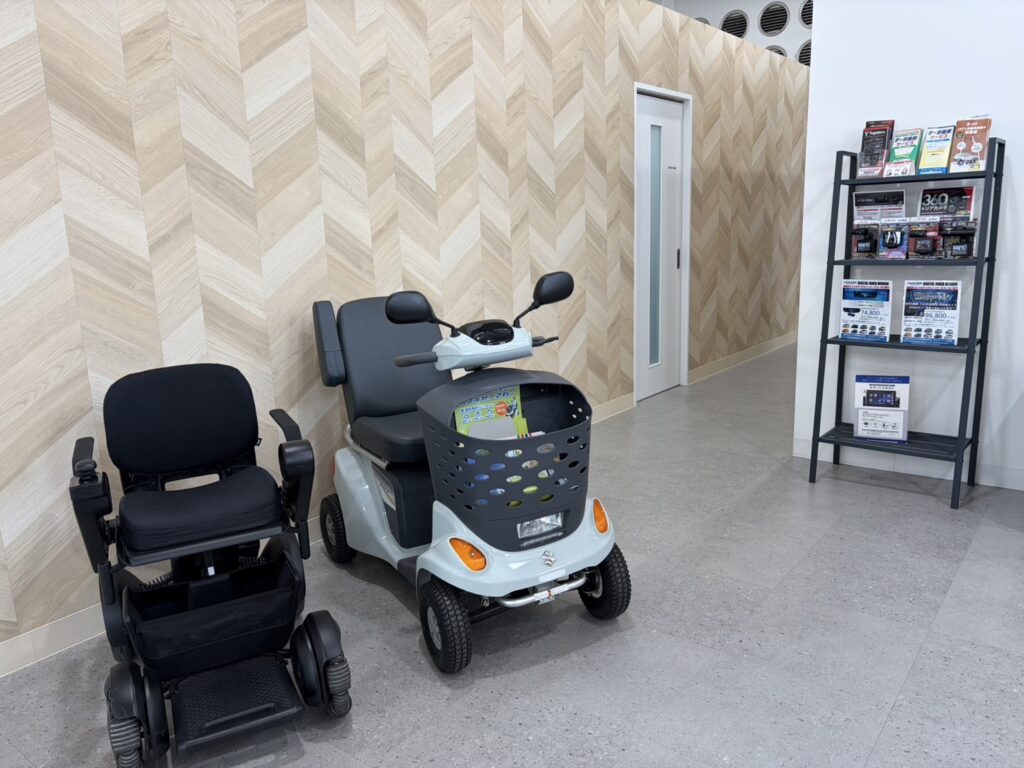 写真のとおり、店内には実際に見ていただけるセニアカーを展示しています🙂
