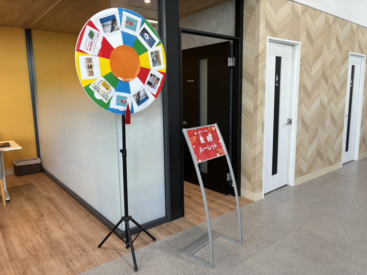 ショールーム内に設置されたカラフルなルーレットは、思わず写真を撮りたくなる存在感📸